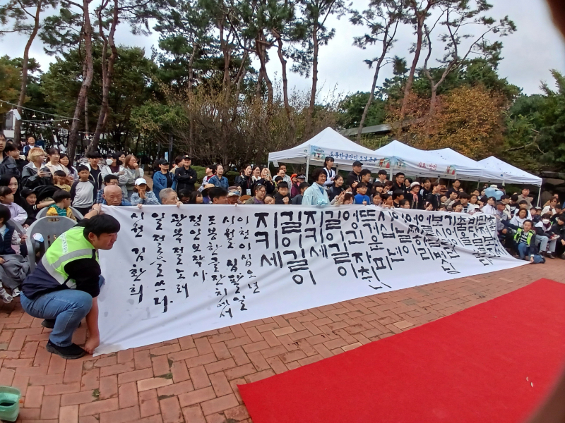 올해는 대한민국 광복 80주년을 기념하기 위해 김환희 서예작가가 큰 붓으로 ‘광복절 노래’ 가사를 쓰는 퍼포먼스를 보여 큰 박수를 받았다. 이어 참석자들이 함께 광복절노래를 힘차게 불러 광복의 영광과 기쁨을 함께 했다.